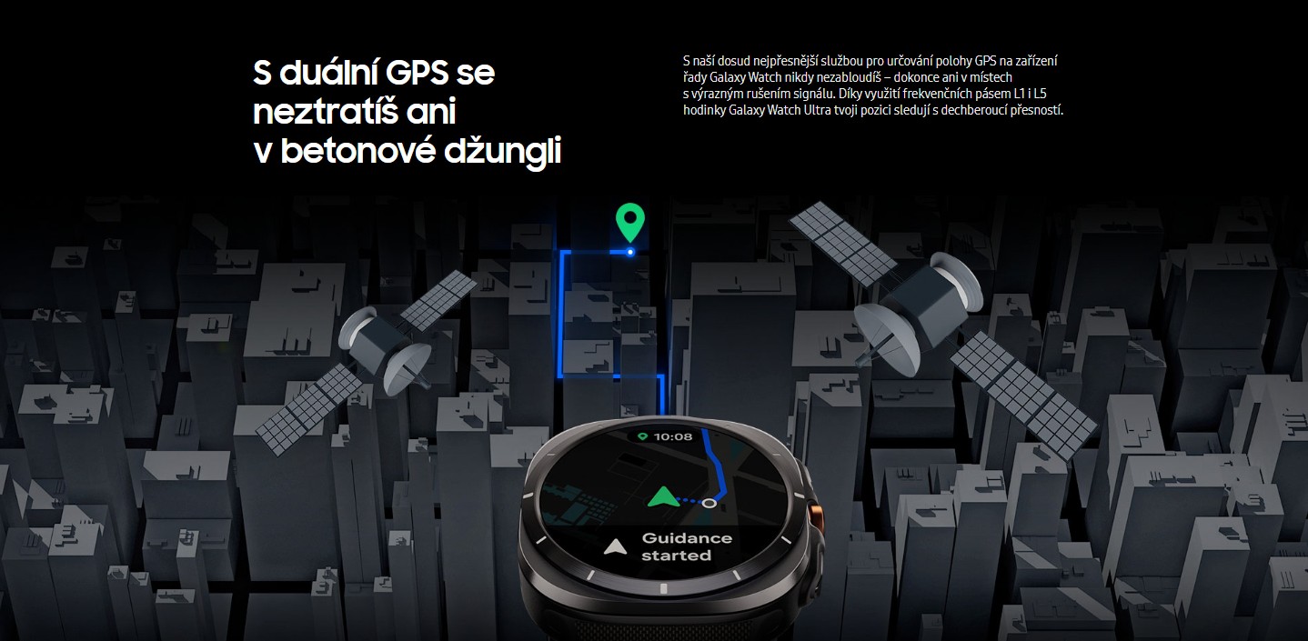 Vytvořeny tak, aby posouvaly hranice, hodinky Galaxy Watch Ultra dokáží vydržet teplotu až 55°C, nadmořskou výšku 9 000 m, tlak vody 10 ATM a při tom všem si udržují stabilní chod díky novému 3nm procesoru. Vydej se na delší cestu s baterií, která zajistí výdrž až 100 hodin v úsporném režimu. Nový BioActive Sensor neustále sleduje důležité zdravotní ukazatele a umělá inteligence Galaxy AI přinese cenné poznatky, které ti umožní hravě překonat všechny limity. Nyní dostupné v barvě Titanium Blue — odstínu, který zosobňuje odolnost a je připravený vydat se s tebou kamkoliv