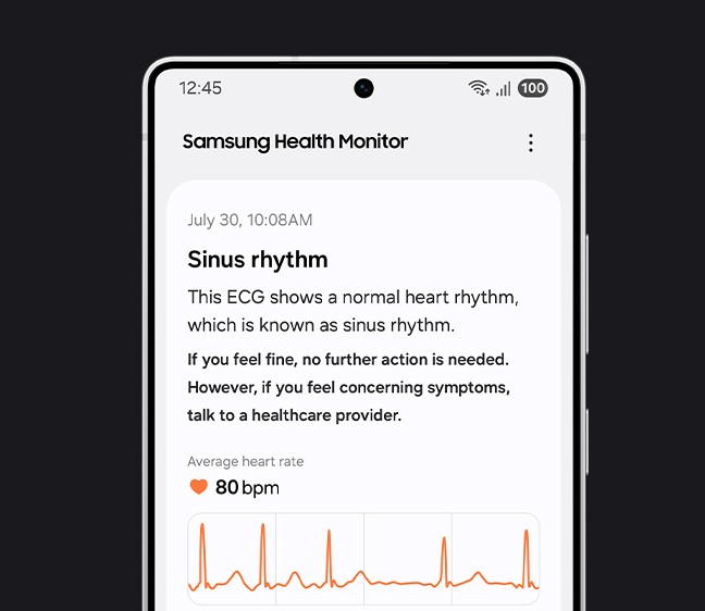 Díky hodinkám Galaxy Watch8 můžeš hlídat nepravidelnosti ve svém srdečním rytmu a lépe tak porozumět stavu svého srdce. Zapni v aplikaci Samsung Health Monitor funkci Upozornění na nepravidelný srdeční rytmus (IHRN) a Galaxy Watch8 budou po celý den monitorovat tvůj puls. Pokud zjistí příznaky nepravidelného srdečního rytmu, jako je fibrilace síní (AFib), obdržíš upozornění s výzvou k provedení EKG, aby se činnost srdce mohla detailně zanalyzovat.