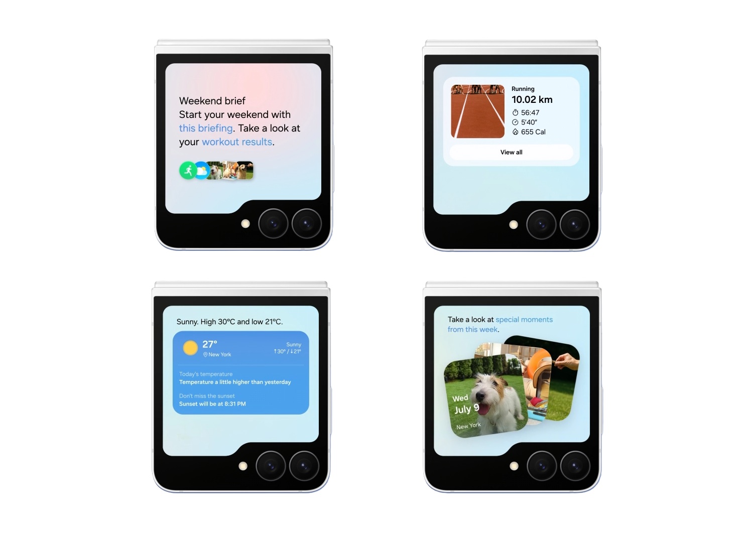 Dostávej personalizovaný přehled svého dne z Now Brief přímo na vnějším displeji. Přizpůsobené informace, jako například nejnovější předpověď počasí a údaje Energy skóre jsou přehledně k dispozici hned na první pohled.