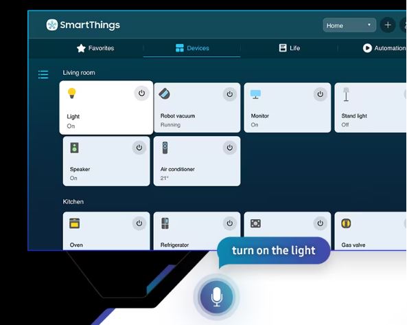 Připravte si půdu pro vítězství přímo z vašeho monitoru. Ztlumte světla, zatáhněte závěsy či žaluzie, nastavte termostat na příjemnou teplotu a vytvořte si dokonalé podmínky pro hraní s plnou integrací systému SmartThings. K dispozici budete mít i hlasové ovládání přes asistenty Bixby či Alexa.