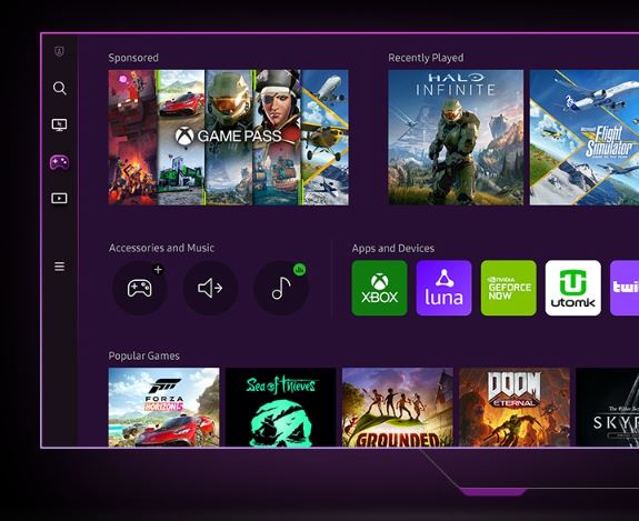 Gaming Hub umožní okamžitý přístup k nejlepším streamovacím platformám z vašich oblíbených herních konzolí. Jemné zobrazení a rychlá herní odezva jsou výsledkem pokročilé streamovací technologie společnosti Samsung bez zdlouhavého stahování – jednoduše zapnete a hrajete.