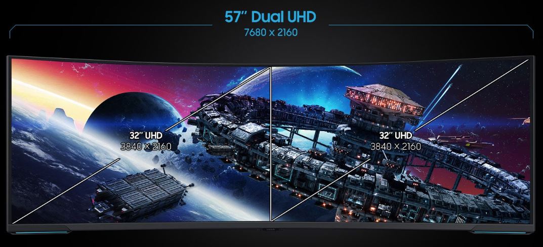 Prožívejte vzrušující herní dobrodružství s neuvěřitelnou porcí detailů a kvalitou zobrazení. Společnost Samsung přichází s prvním duálním UHD monitorem, který vám dopřeje ohromující zážitek na 57" displeji se zakřivením 1000R. Epické scény vás díky tomu zcela obklopí a vy se naplno ponoříte do děje díky omezení rušivých faktorů ve vašem zorném poli.