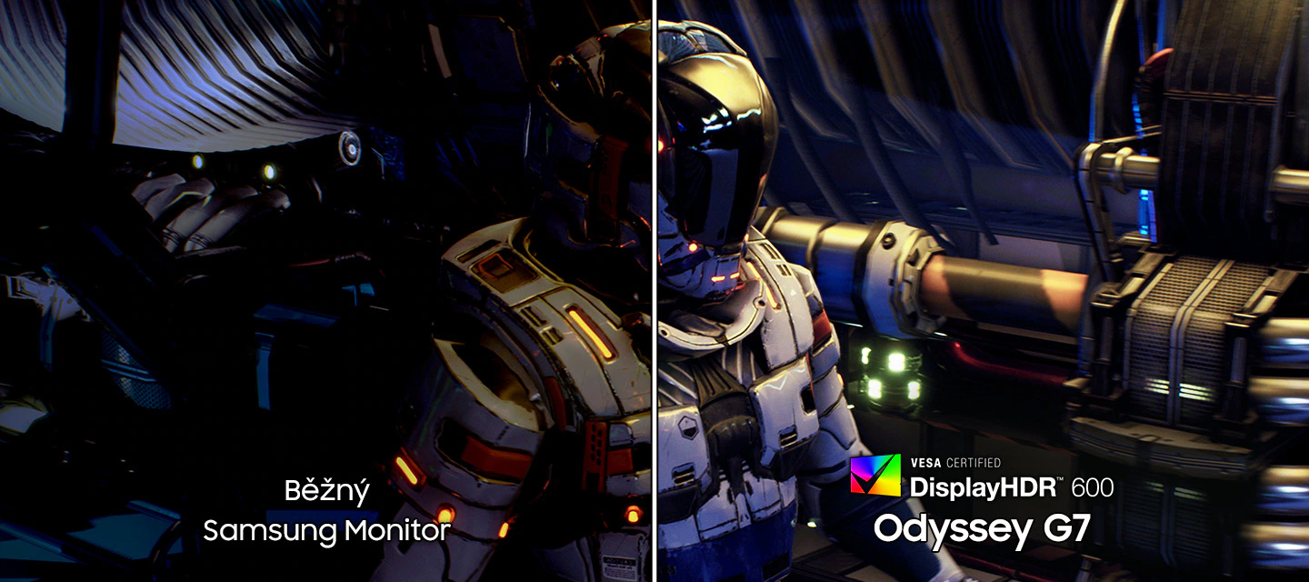 Prohlédni si každé zákoutí obrazu. Standard DisplayHDR 600 poskytuje vyšší kontrast, hlubší odstíny černé a jasnější bílou, což detailům umožní vyniknout i ve tmavých scénách.