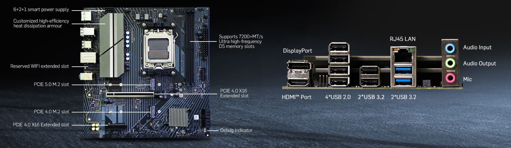 * 2x DIMM, dvoukanálové DDR5, maximální kapacita paměti 64 GB (2x 32 GB), až 7600 MT/s (přetaktování)