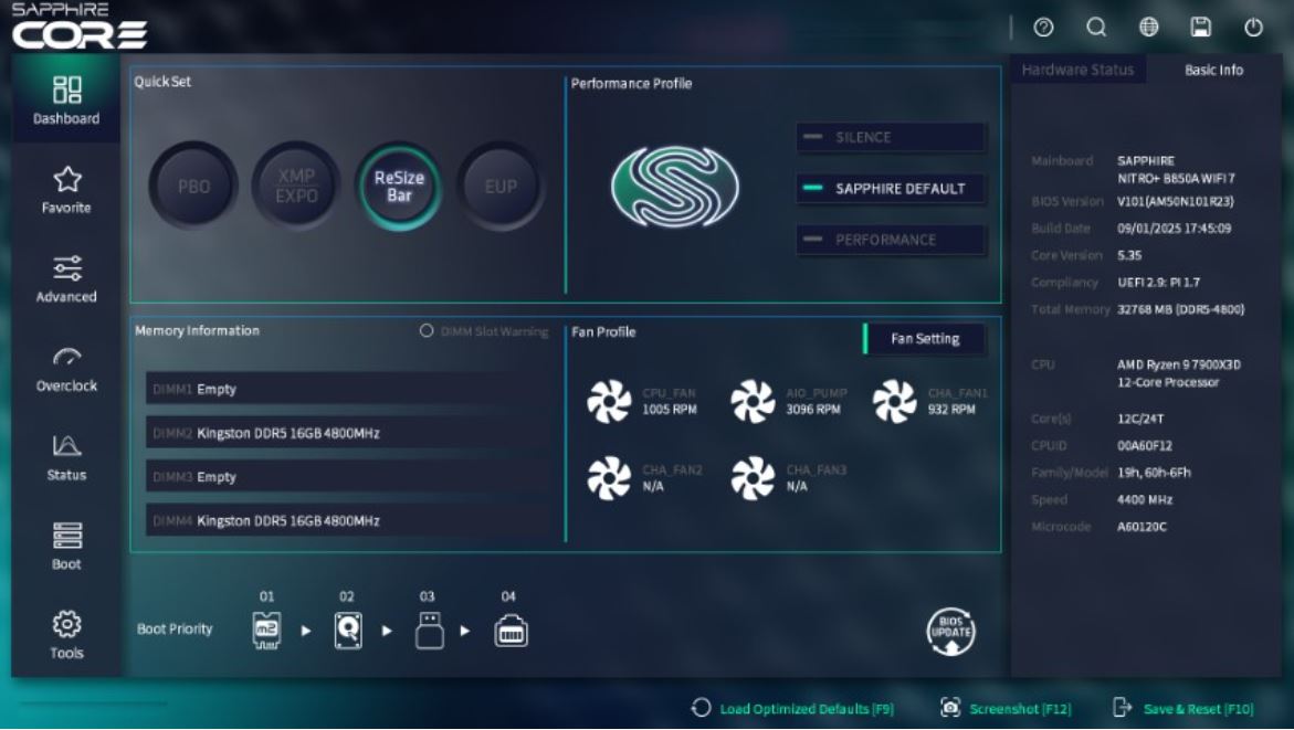 3) V části Performance Profile mĹŻĹľete rychle pouĹľĂt odpovĂdajĂcĂ nastavenĂ ventilátoru – Silence, Default nebo Performance.