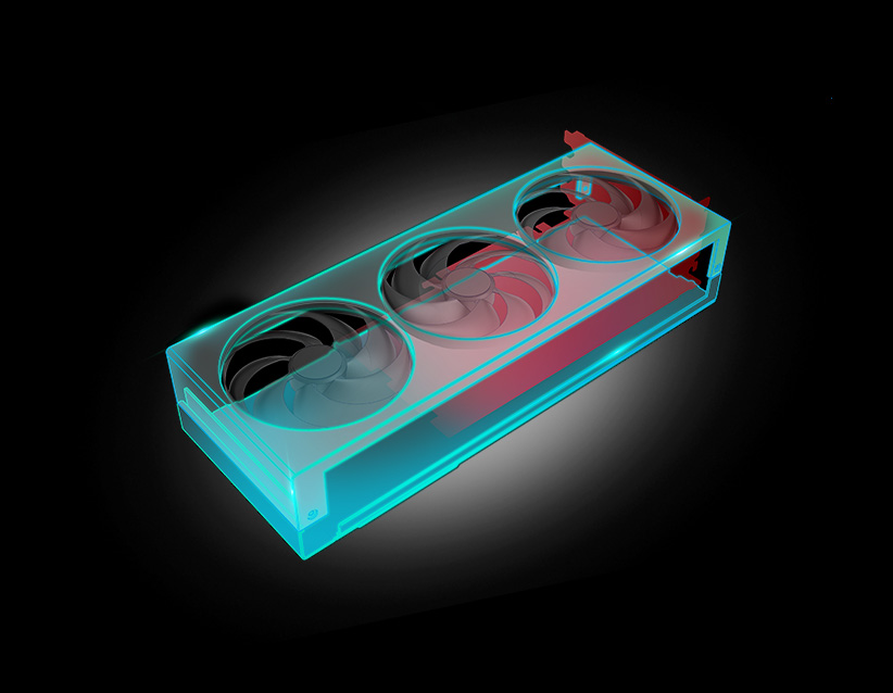 Mechanická konstrukce grafickĂ© karty se vyznaÄŤuje robustnĂm rámem ve tvaru krabice, kterĂ˝ zajišťuje vĂ˝jimeÄŤnou kvalitu provedenĂ a odolnost. Tato pevná konstrukce poskytuje ochrannĂ˝ kryt pro všechny vnitĹ™nĂ součásti a sniĹľuje riziko poškozenĂ pĹ™i manipulaci nebo instalaci. Tento pevnĂ˝ rám nabĂzĂ dodateÄŤnou stabilitu a pevnost, takĹľe je vysoce odolnĂ˝ vĹŻÄŤi náhodnĂ˝m nárazĹŻm nebo tlaku, coĹľ zajišťuje, Ĺľe choulostivĂ© komponenty, jako je GPU, paměť a VRM, zĹŻstanou v bezpeÄŤĂ. DĂky tĂ©to konstrukci mohou uĹľivatelĂ© s kartou bez obav manipulovat, aniĹľ by se obávali narušenĂ jejĂ integrity nebo vĂ˝konu.