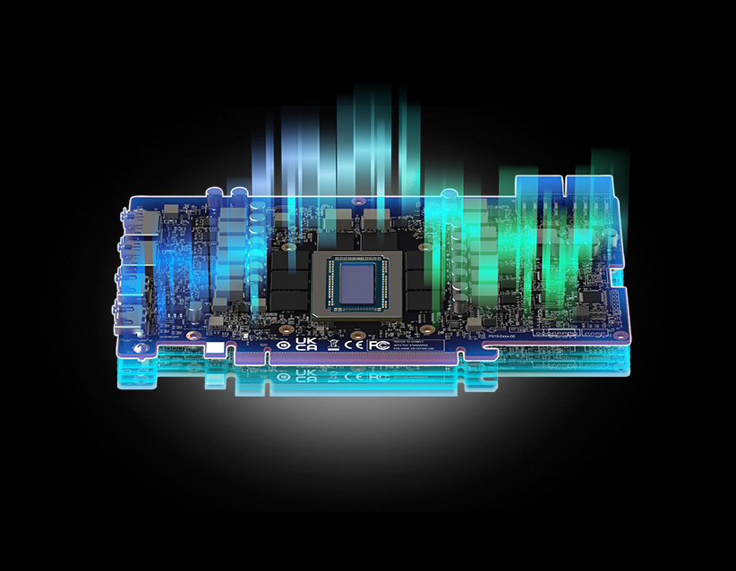 Mechanická konstrukce grafickĂ© karty se vyznaÄŤuje robustnĂm rámem ve tvaru krabice, kterĂ˝ zajišťuje vĂ˝jimeÄŤnou kvalitu provedenĂ a odolnost. Tato pevná konstrukce poskytuje ochrannĂ˝ kryt pro všechny vnitĹ™nĂ součásti a sniĹľuje riziko poškozenĂ pĹ™i manipulaci nebo instalaci. Tento pevnĂ˝ rám nabĂzĂ dodateÄŤnou stabilitu a pevnost, takĹľe je vysoce odolnĂ˝ vĹŻÄŤi náhodnĂ˝m nárazĹŻm nebo tlaku, coĹľ zajišťuje, Ĺľe choulostivĂ© komponenty, jako je GPU, paměť a VRM, zĹŻstanou v bezpeÄŤĂ. DĂky tĂ©to konstrukci mohou uĹľivatelĂ© s kartou bez obav manipulovat, aniĹľ by se obávali narušenĂ jejĂ integrity nebo vĂ˝konu.