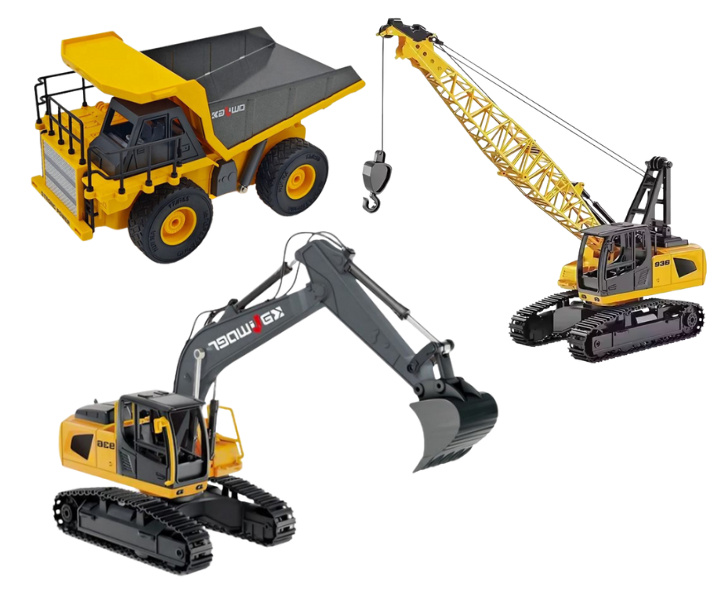 Set RC bagru, dump trucku a pásového jeřábu 1/24