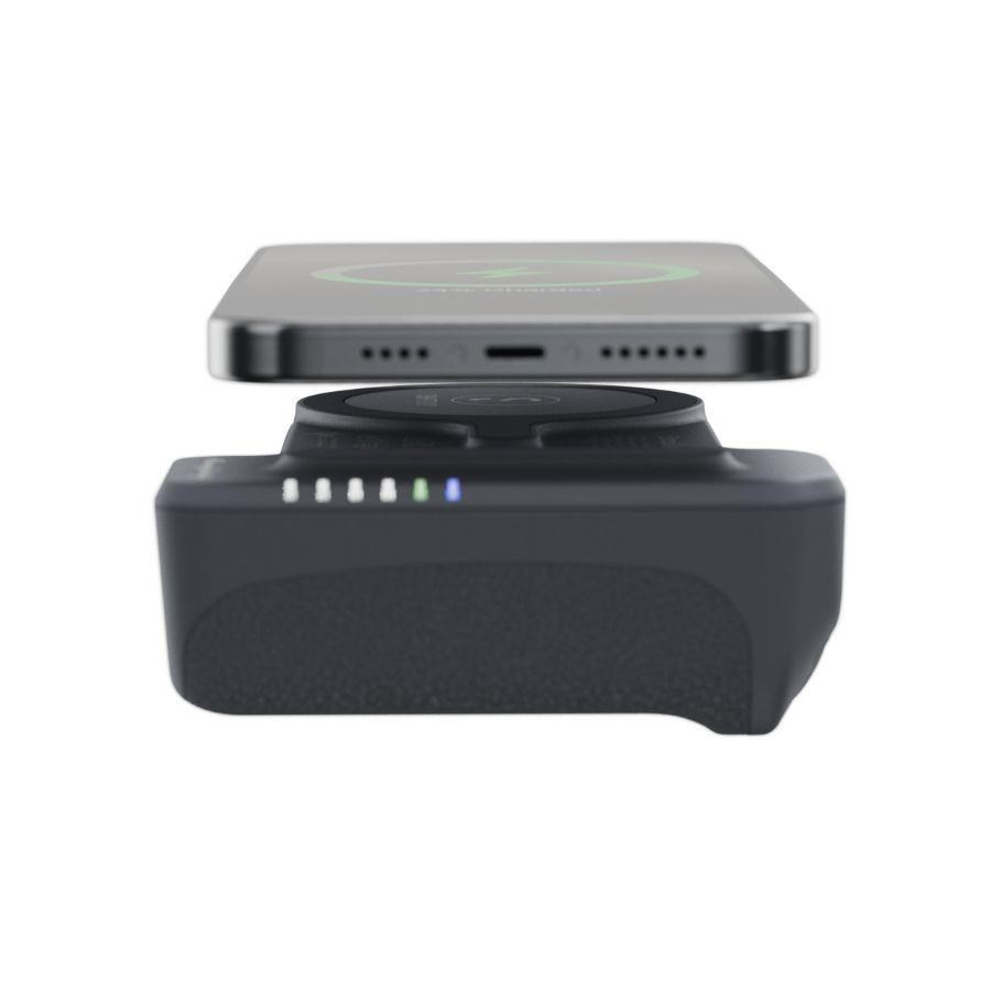 SnapGrip Pro je vybaven výrazně vylepšenou baterií s kapacitou 5000 mAh, která poskytuje 20W PD výstup pro rychlejší a efektivnější nabíjení. V praxi to znamená, že díky těmto parametrům si budete moci užívat až o 60 % delší výdrž, než jakou nabízela první generace ShiftCam SnapGripů. Dovolí vám pořizovat až 1,6krát více videozáznamů, hodiny streamovat své oblíbené pořady nebo s rezervou přežít celý den plný dobrodružství. Podpora kabelového PD nabíjení navíc přináší možnost nabít 50 % baterie telefonu za pouhých 30 minut. Sečteno, podtrženo – ať už nabíjíte iPhone, nebo iPad, SnapGrip Pro vám vydrží podstatně déle. Samotný grip lze nabít klasicky prostřednictvím USB-C kabelu. Nabíjecí port se nachází v jeho spodní části. Po jeho stranách pak najdete několik malých LED diod, které indikují úroveň zbývající baterie a aktivní Bluetooth připojení.