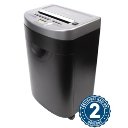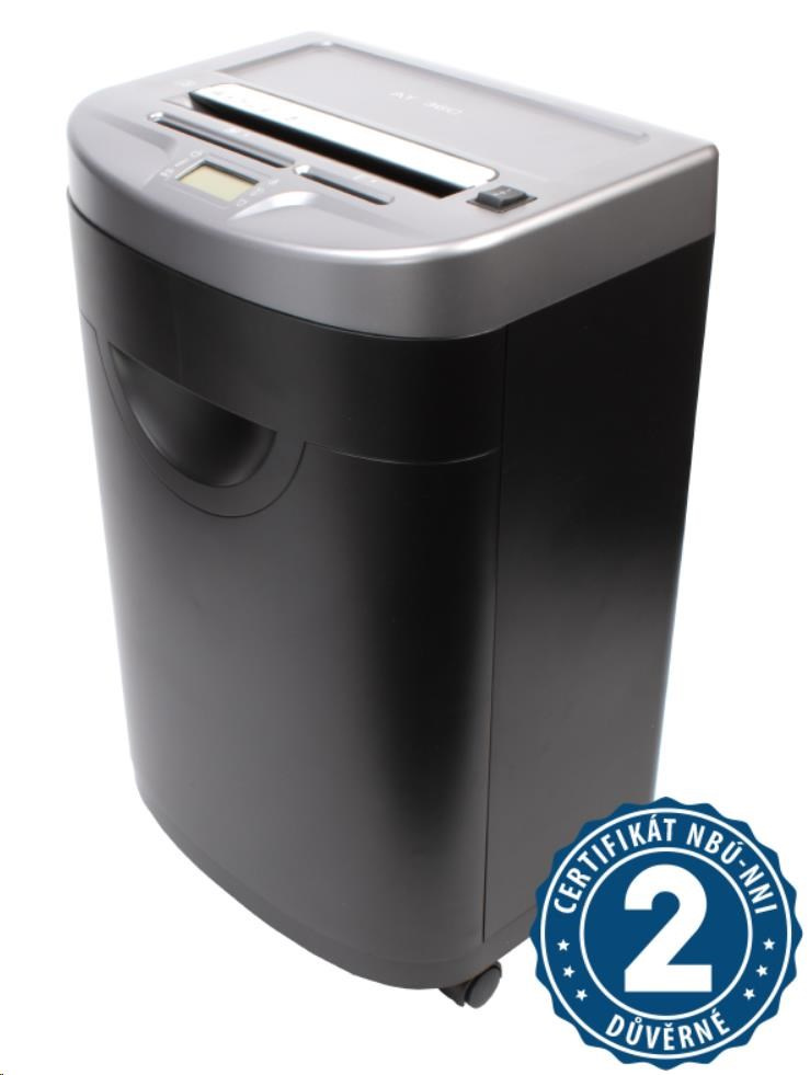 Kvalitní skartovací stroj atraktivního designu, s vysokým stupněm utajení skartovaného materiálu. Vhodný pro kanceláře a úřady. Skartovač je vybaven bezpečnostní funkcí Safe Touch, která zastaví stroj při dotyku vstupní štěrbiny rukou. LCD display ke kontrole zapnutých funkcí. Stroj je standardně vybaven automatickým systémem start/stop, zpětným chodem, tepelnou pojistkou motoru proti přehřátí a signalizací přeplněného koše. Příležitostně lze skartovat sešívací sponky. Samostatný vstup na kreditní karty nebo CD. Tichý chod stroje-55 dB. Lehce vyprázdnitelná odpadní nádoba o objemu 35 l. Stupeň utajení dle vyhlášky č. 528/2005 - T - tajné. Součástí stroje jsou pojezdová kolečka. Inovace od roku 2015 tišší motor a zvýšený výkon na 15 listů. Vstup na papír: 230 mm Šíře řezu:2x10 mm Max. kapacita skartace listů: 12A4/70g m2 Skartace sešívacích sponek: ano Skartace kreditních karet: ano Skartace CD: ano Objem odpadní nádoby: 35 l Automatický start/stop: ano Tepelná pojistka motoru: ano Rozměry: 390 x 305 x 645 mm Hmotnost: 23 kg.