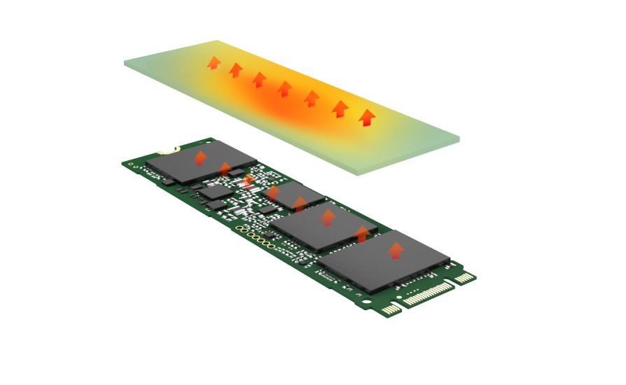 Interní tepelné řešení M.2 SSD poskytuje účinné médium pro přenos tepla z SSD do hliníkového krycího panelu, které zajišťuje zachování optimálního výkonu SSD.