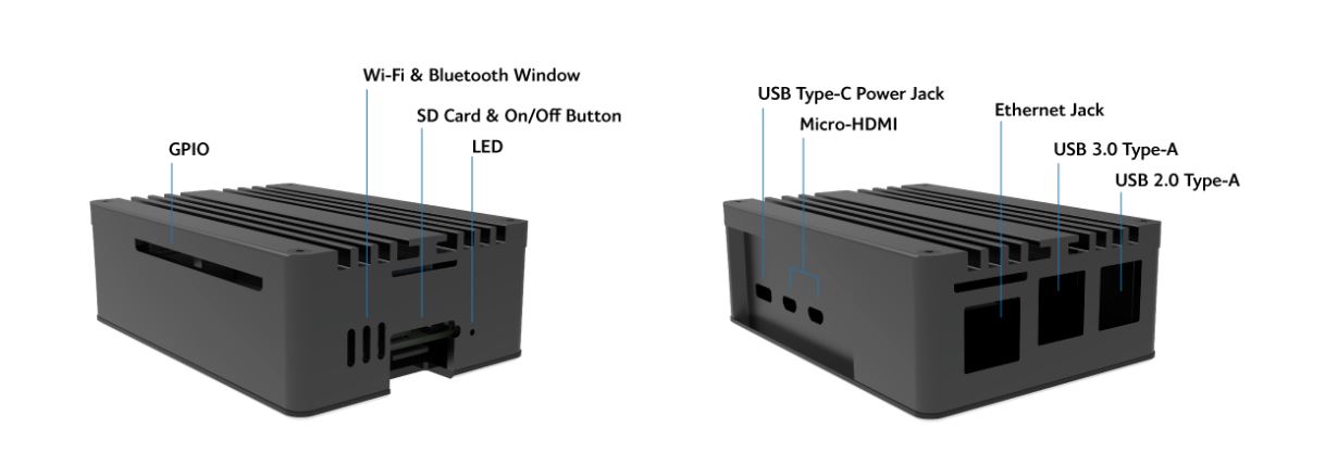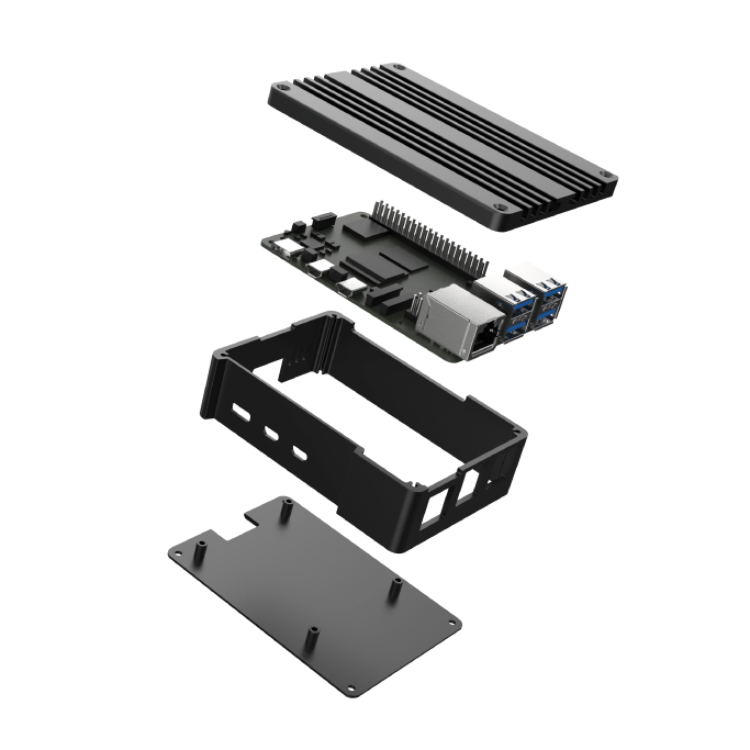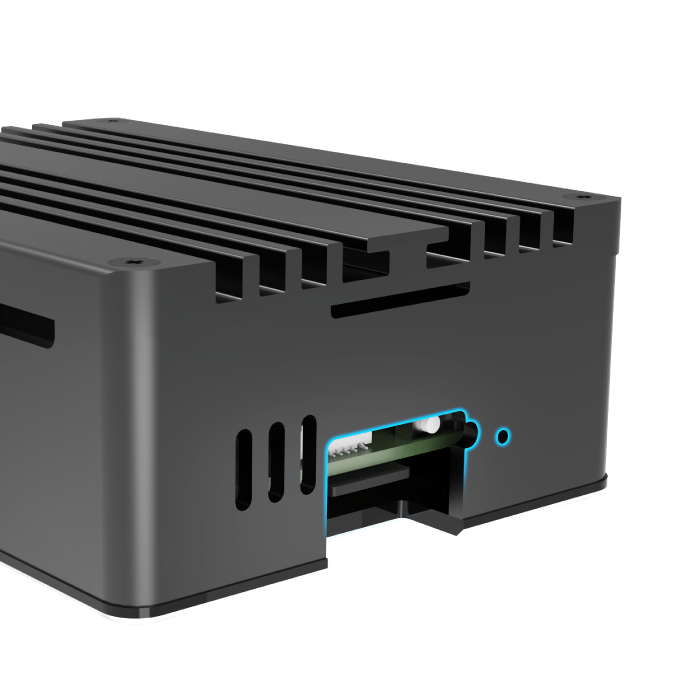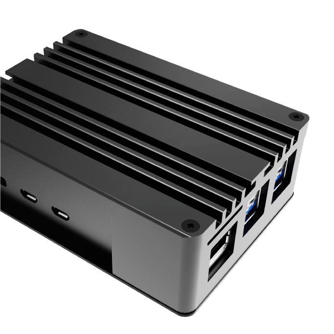 Pouzdro z čistého hliníku, eloxované klasickou černou barvou pro úžasný vzhled. Jeho kompaktní rozměry umožňují přenášení nebo snadnou montáž a poskytují úplný přístup ke všem portům. Prvotřídní hliníková konstrukce pomáhá chránit počítač Raspberry Pi 5 před fyzickým poškozením.