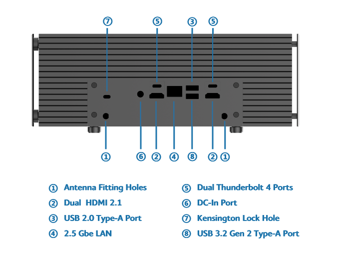 Skříň Turing AC Pro poskytuje konektorový otvor pro duální HDMI 2.1 a duální Thunderbolt™ 4 z Intel® NUC 13 Pro pro připojení čtyř displejů 4K. Ideální pro řadu podnikových aplikací, jako je zabezpečení a digitální nápisy.