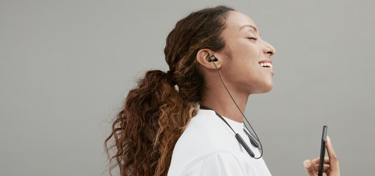 Sluchátka WI-C100 vám díky zavěšení za krk nespadnou, zatímco kryt kopírující kontury ucha vám zajistí maximální pohodlí.