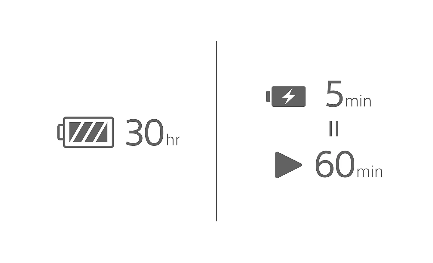 Navržena na celodenní nošení a používání. Delší výdrž baterie znamená, že samotná sluchátka můžete používat až 8,5 hodiny a v pouzdře další 21,5 hodiny. Při plném nabití tak získáte 30 hodin poslechu. A díky 5minutovému rychlému nabíjení je můžete bleskově dobít a zajistit si hodinu přehrávání navíc.