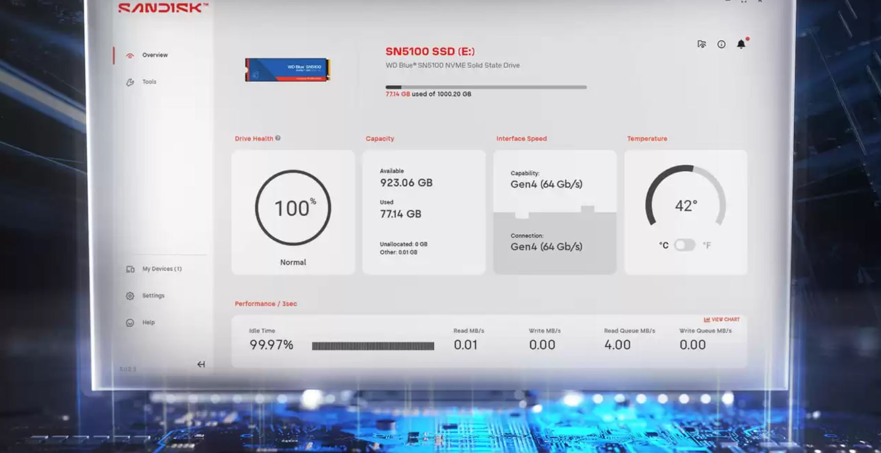 Sledujte výkon svého SSD disku a kontrolujte jeho aktualizace pomocà aplikace SANDISK Dashboard, kterou si můžete stáhnout.