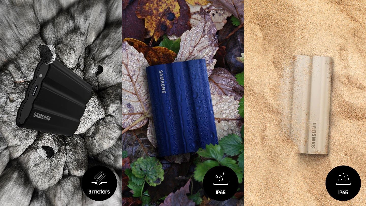Úžasně odolný, rychlý a kompaktní. Zcela nový přenosný SSD T7 Shield nabízí vynikající výkon, ať už se vydáte kamkoliv – dokonce i do náročných podmínek. Bleskurychlé datové přenosy, odolnost proti pádu, vodě i prachu zaručí nerušenou práci i bezpečí vašich dat za každých okolností.