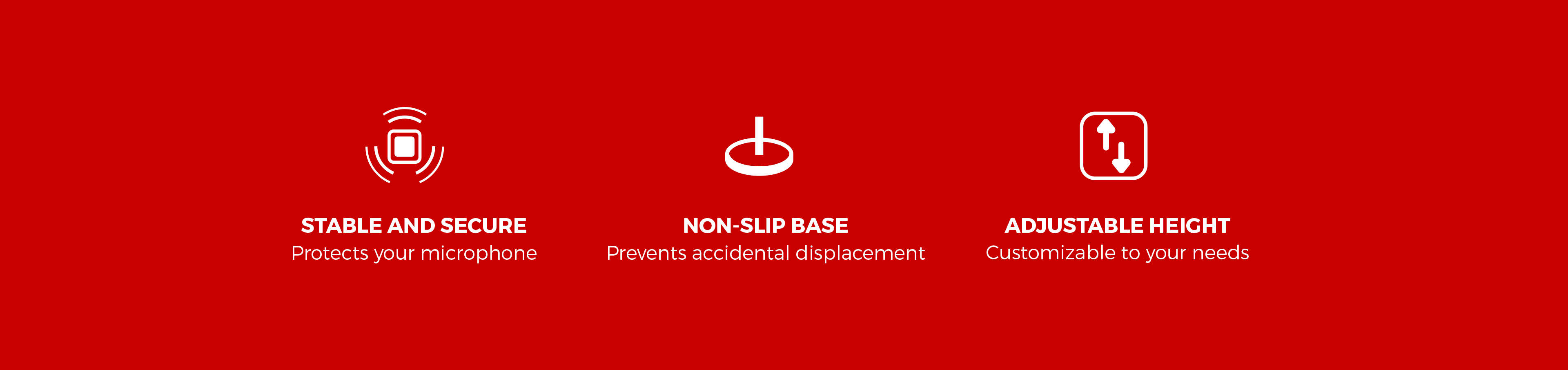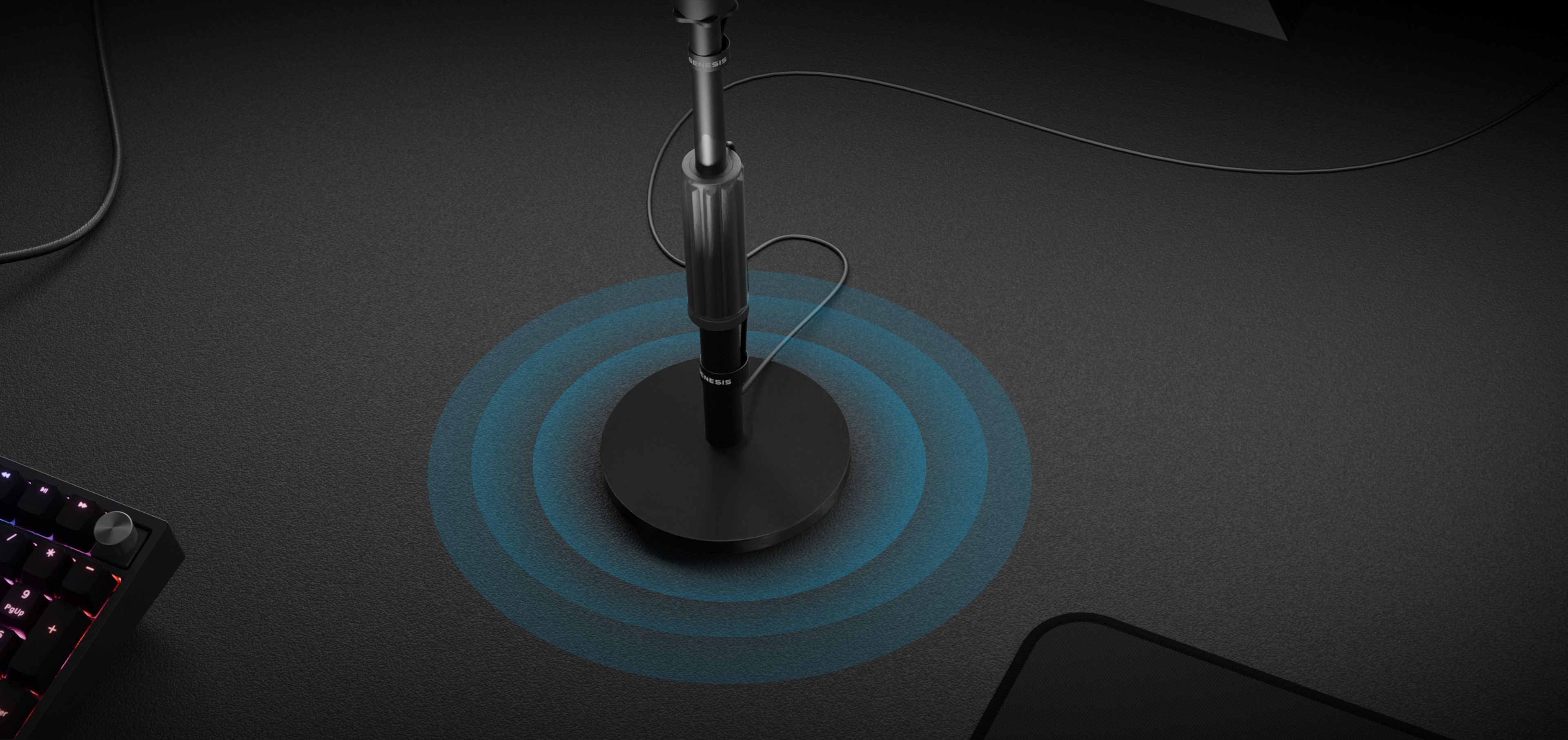 Ve společnosti GENESIS víme, jak důležitá je stabilita při výběru dobrého stativu. V případě stojanu Thulium 350D ji zajišťuje těžká, vyvážená a protiskluzová základna. Ta zajišťuje, že mikrofon bude stát na jednom místě a minimalizuje riziko nežádoucích vibrací a posunů, které mohou narušit vaše nahrávky. Ať už natáčíte podcast nebo vysíláte živě, mikrofon Thulium 350D vám poskytne jistotu, že mikrofon zůstane ve správné poloze.
