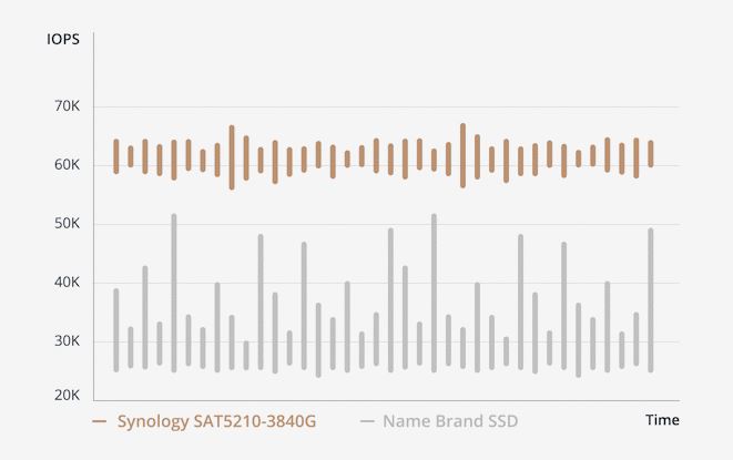 Disky Synology řady SAT5200 jsou navrženy pro náročná prostředí, jako jsou databáze pro online zpracování transakcí (OLTP) a virtualizační nasazení, a poskytují trvale vysoký výkon.