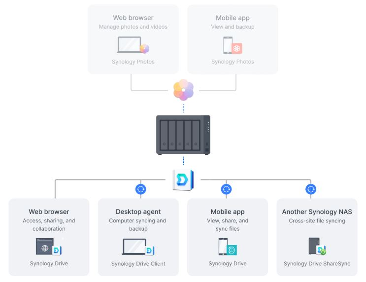 Automaticky synchronizujte data mezi zaĹ™ĂzenĂm Synology NAS a velkĂ˝mi poskytovateli cloudu, vÄŤetnÄ› sluĹľeb BackBlaze B2, Dropbox, Google Drive a Microsoft OneDrive. Podpora vĂce protokolĹŻ, šifrovánĂ na stranÄ› klienta a nastavitelnĂ© ovládánĂ synchronizace a šĂĹ™ky pásma umoĹľĹujĂ efektivnĂ správu ĂşloĹľištÄ› mezi rĹŻznĂ˝mi platformami.