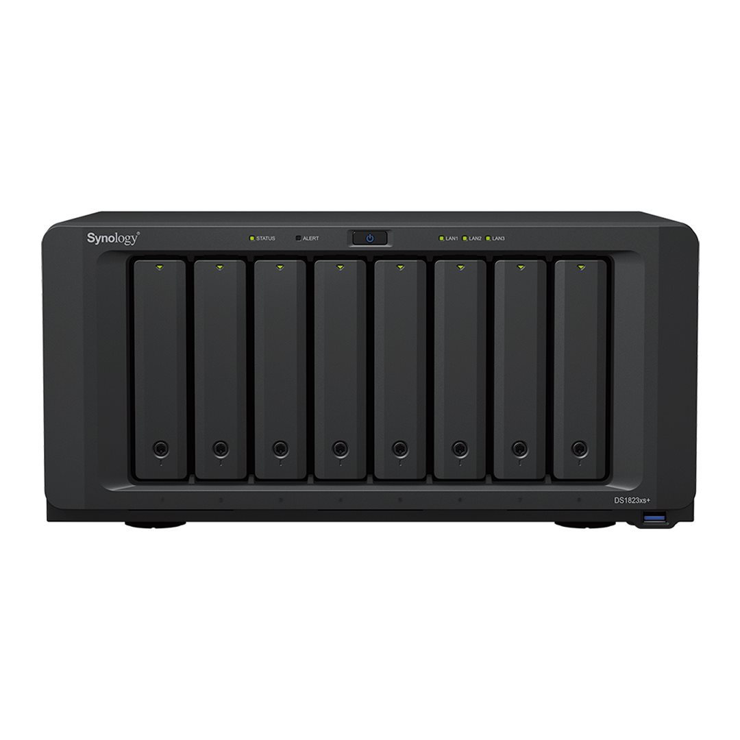 DS1823xs+ je výkonný centrální server úložiště, který lze kdekoli snadno nasadit, aby poskytoval sdílené úložiště dat a sdílení, zálohování koncových bodů a serverů, úložiště virtuálních počítačů, správu sledování a další firemní aplikace. Dokonale se hodí do prostředí, kde není k dispozici vyhrazená serverová skříň nebo datové centrum.