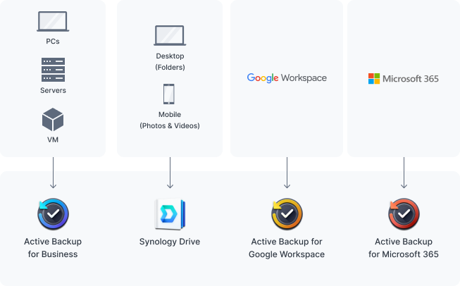 Soubory, sloĹľky, fyzická zaĹ™ĂzenĂ, virtuálnĂ poÄŤĂtaÄŤe a aplikace SaaS lze zálohovat pomocĂ bezplatnĂ˝ch Ĺ™ešenĂ a samotnĂ© zaĹ™ĂzenĂ NAS lze chránit pomocĂ vestavÄ›nĂ˝ch technologiĂ.