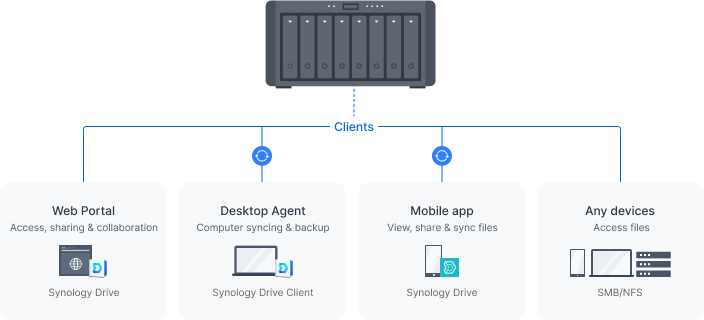 ZaĹ™ĂzenĂ DS1823xs+ mĹŻĹľete pouĹľĂvat jako centrálnĂ ĂşloĹľištÄ› souborĹŻ a centrum pro sdĂlenĂ dat. NabĂdnÄ›te jednoduchĂ˝ pĹ™Ăstup k firemnĂm datĹŻm z poÄŤĂtaÄŤĹŻ, telefonĹŻ a dalšĂch zaĹ™ĂzenĂ a nastavenĂm vĂ˝konnĂ© synchronizace mezi servery umoĹľnÄ›te spolupráci mezi kancelářemi nebo poboÄŤkami.