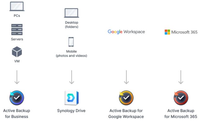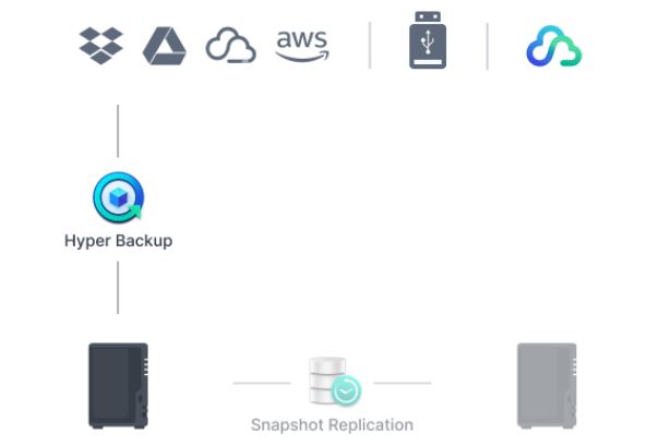 PomocĂ komplexnĂch plánovanĂ˝ch záloh, vÄŤetnÄ› ĂşplnĂ©ho zálohovánĂ systĂ©mu, do mĂstnĂch a vzdálenĂ˝ch serverĹŻ, externĂch diskĹŻ nebo cĂlĹŻ v cloudovĂ˝ch ĂşloĹľištĂch, vÄŤetnÄ› sluĹľby Synology C2 Storage, mĹŻĹľete chránit všechna data, aplikace a konfigurace svĂ˝ch systĂ©mĹŻ Synology.