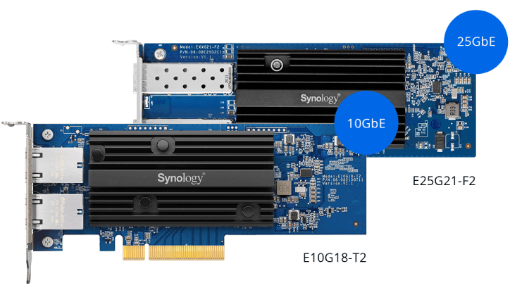 Přidejte až 2 x 10/25/40GbE karty síťového rozhraní pomocí 2 x PCIe 3.0 slotů a umožněte bleskurychlé připojení k síti během několika minut.