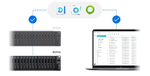 Spárujte dvě jednotky FS3410 s funkcí Synology High Availability, abyste umožnili automatické převzetí služeb v řádu minut při selhání serveru nebo minimalizovali prostoje při provádění aktualizací nebo upgradů systému.