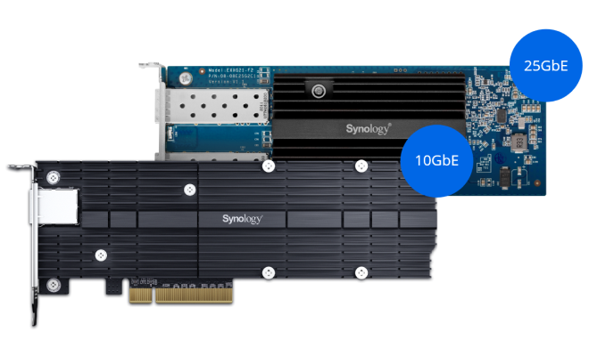 Zlepšete výkon I/O nebo redundanci pomocí síťového připojení s 10/25GbE SFP+/SFP28 nebo RJ-45.