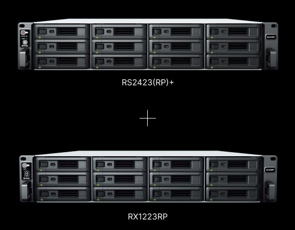 Pomocí rozšiřovací jednotky RX1223RP můžete přidat dalších 12 diskových šachet a dosáhnout tak celkového počtu 24 diskových šachet.