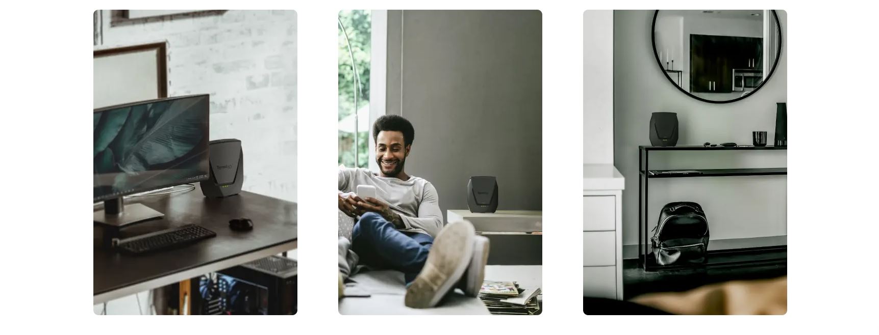 Rozlučte se s mrtvými zónami Wi-Fi. Použijte několik směrovačů Synology (WRX560 nebo jiné) a vytvořte vysokorychlostní pokrytí celé domácnosti pod jediným názvem Wi-Fi.