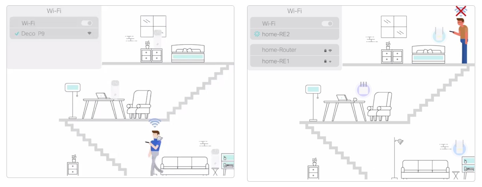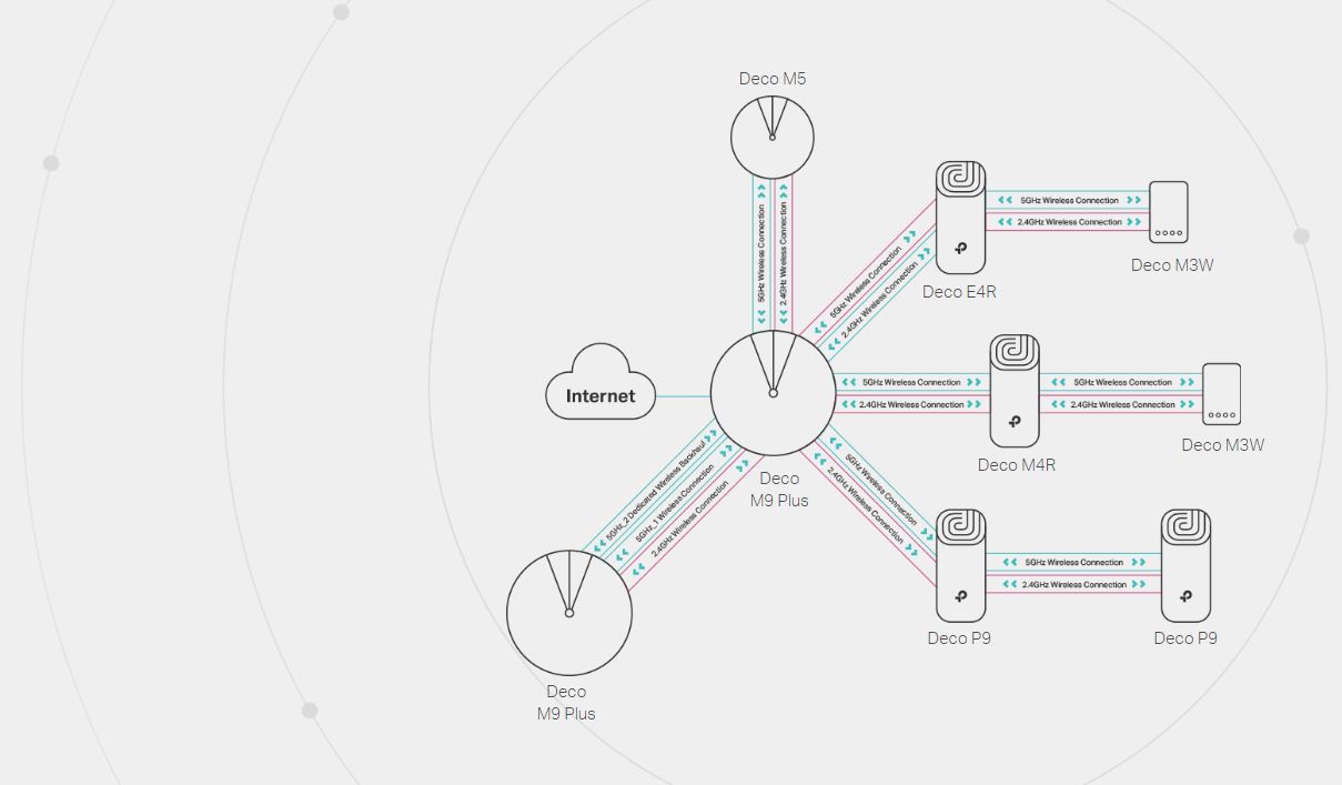 Deco P9 je kompatibilnĂ se všemi Deco modely a vytvářà Mesh sĂĹĄ. RozšiĹ™te pokrytĂ Mesh Wi-Fi kdykoli jednoduše pĹ™idánĂm vĂce Deco.