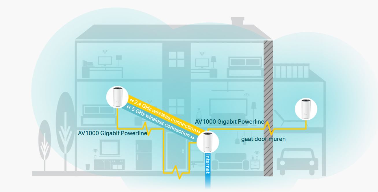 HybridnĂ systĂ©m pro celĂ˝ dĹŻm poskytuje rozšĂĹ™enĂ© pokrytĂ aĹľ do plochy 560 m2 s pomocĂ kombinace dvou pásem Wi-Fi a elektrickĂ©ho vedenĂ. Eliminujte oblasti se slabĂ˝m signálem v celĂ© domácnosti pomocĂ Wi-Fi a jiĹľ nemusĂte hledat stabilnĂ pĹ™ipojenĂ.