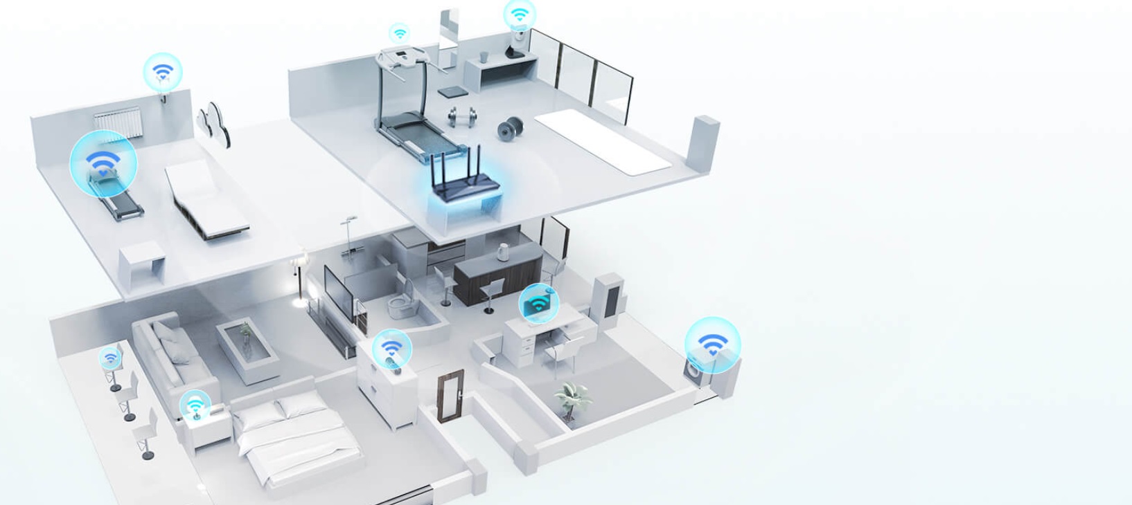 *Širší pokrytí - Vylepšený algoritmus, tvarování paprsku a vysoce výkonné antény zvyšují výkon pokrytí Wi-Fi.