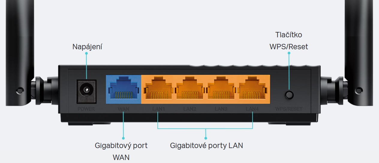 Gigabitové ethernetové porty (1 WAN + 4 LAN) poskytují až 10× rychlejší přenosové rychlosti v porovnání se standardním ethernetovým připojením. Zapojte do nich své PC, chytrou televizi nebo herní konzoli a získejte rychlé a spolehlivé připojení.