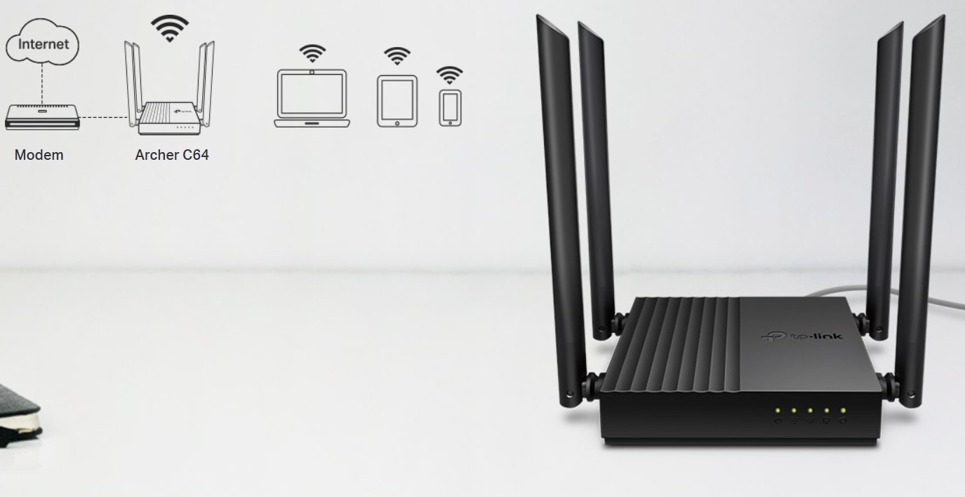 TP-Link Archer C64 AC1200 WiFi DualBand Router, 5xGb,4x anténa, Agile Config