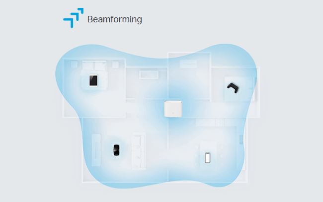 Spojení technologie Beamforming a vysoce výkonných antén přizpůsobí pokrytí WiFi, aby dokonale zapadlo do domácnosti a soustředí sílu signálu ke každému zařízení.