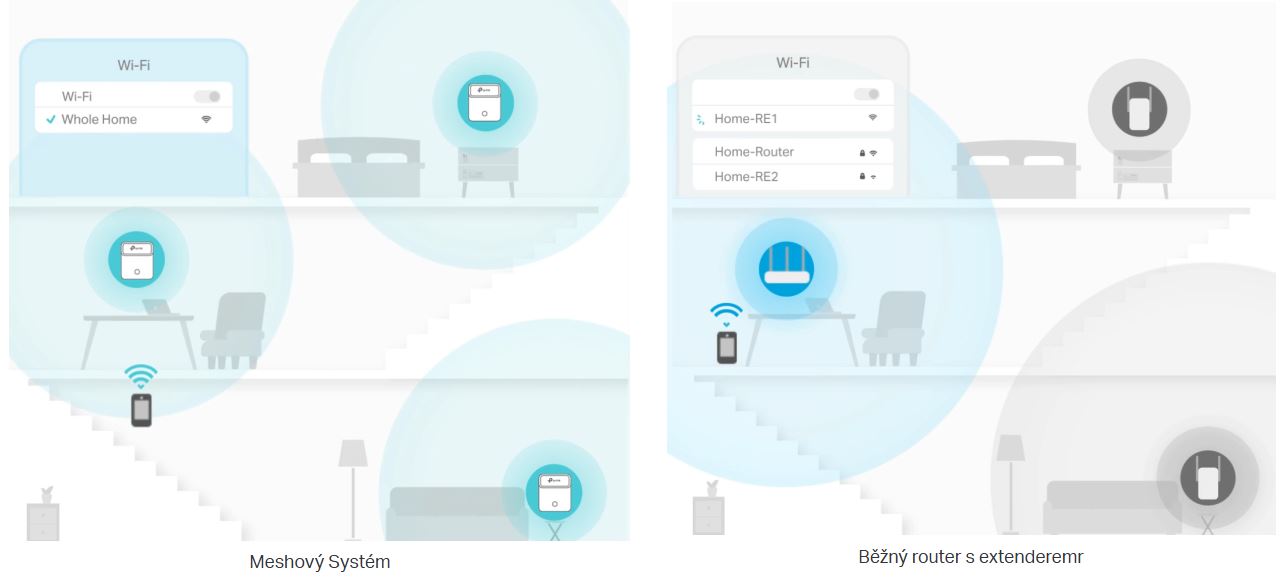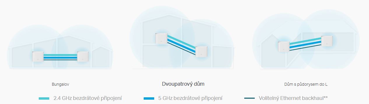 Všechny jednotky spolupracují a tvoří jednu společnou síť. Když se budete pohybovat v domě, vaše mobilní zařízení se automaticky připojí k nejrychlejší jednotce a vytvoří tak skutečně bezvýpadkový Wi-Fi zážitek.