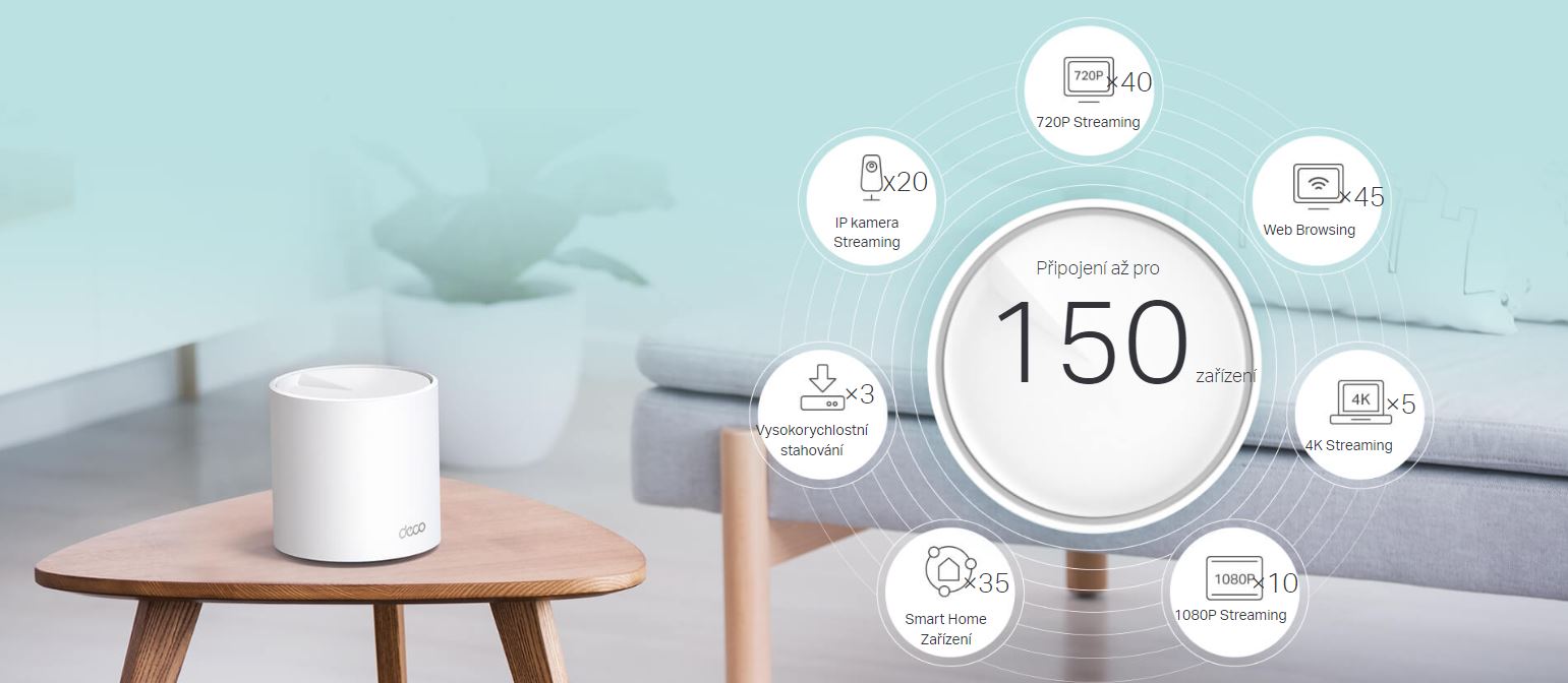 *Připojte více zařízení: Technologie OFDMA a MU-MIMO čtyřnásobně zvyšuje kapacitu a umožňuje současný přenos více zařízení.