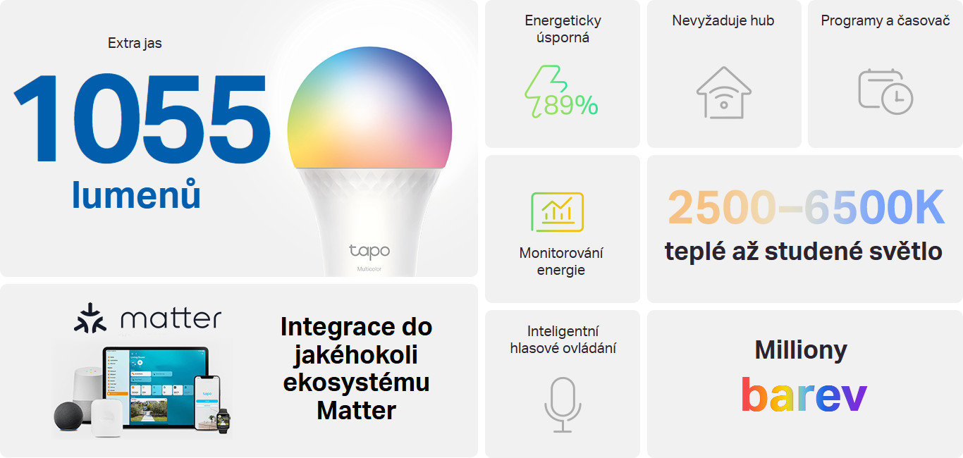 TP-link chytrá žárovka Tapo L535E, podpora Matter