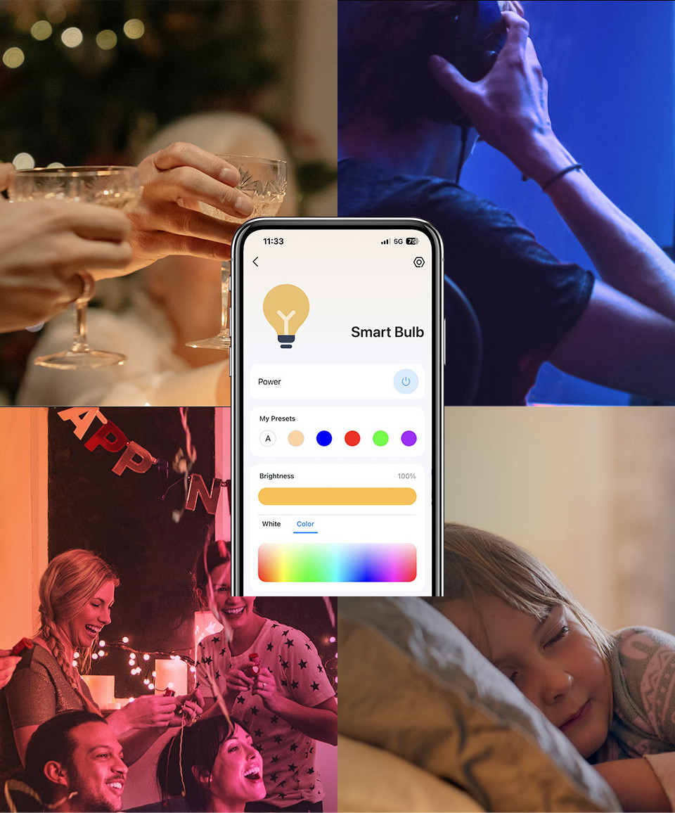 Ovládejte svou chytrou žárovku odkudkoli pomocĂ aplikace Tapo. StmĂvejte, zapĂnejte a vypĂnejte nebo mÄ›Ĺte barvy žárovky na dálku na dosah ruky.