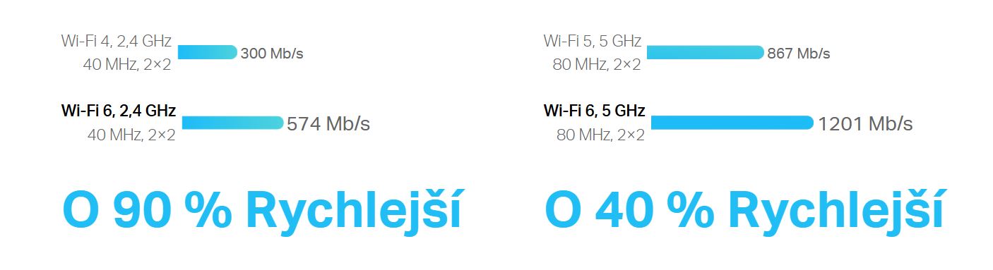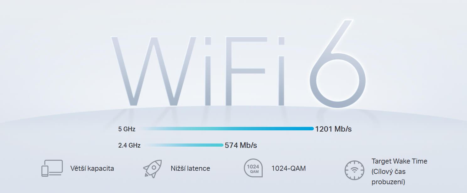 Dvoupásmová Wi-Fi 6 síť s rychlostí až 1,8 Gbit/s