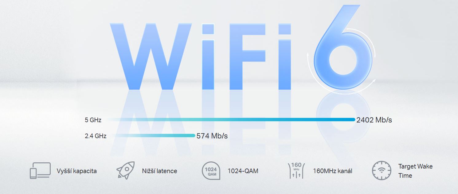 *Více připojení: Technologie OFDMA a MU-MIMO zvyšují kapacitu a umožňují současný přenos do více zařízení.