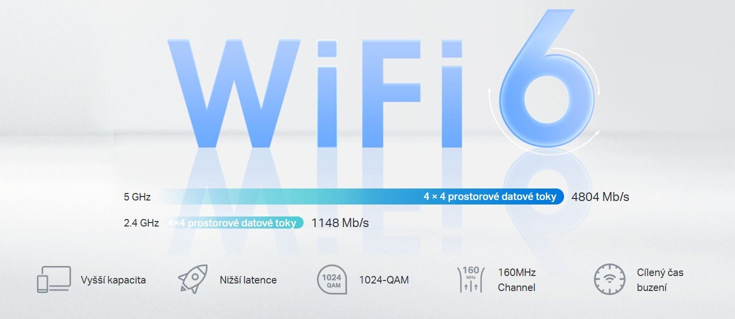 Dvoupásmová Wi-Fi 6 síť s rychlostí až 6,0 Gb/s