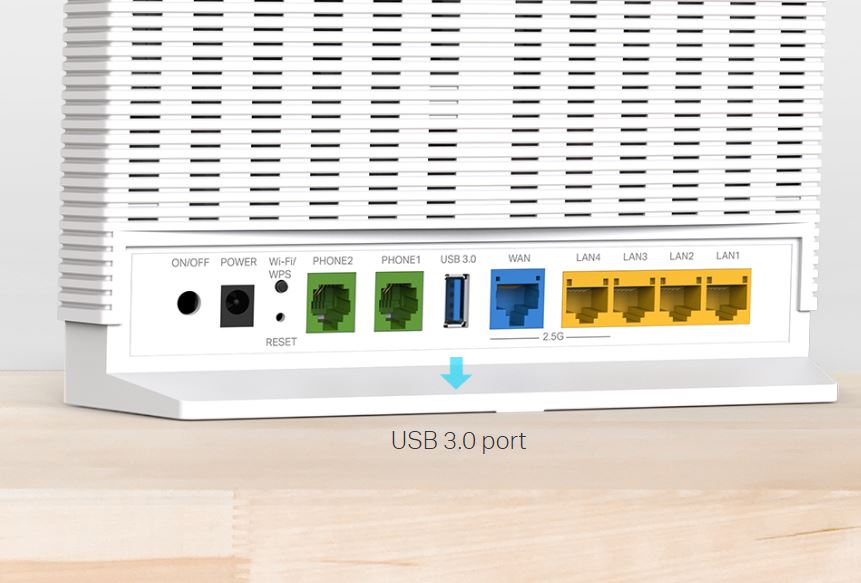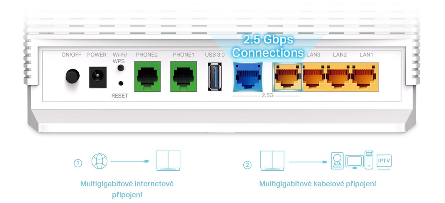 *Multigigabitové připojení: Port 2,5G WAN a port 2,5G LAN vám pomůže překonat omezenou průchodnost technologie 1 Gbit/s a zrychlit jak přístup k internetu, tak rychlost kabelem připojených zařízení.