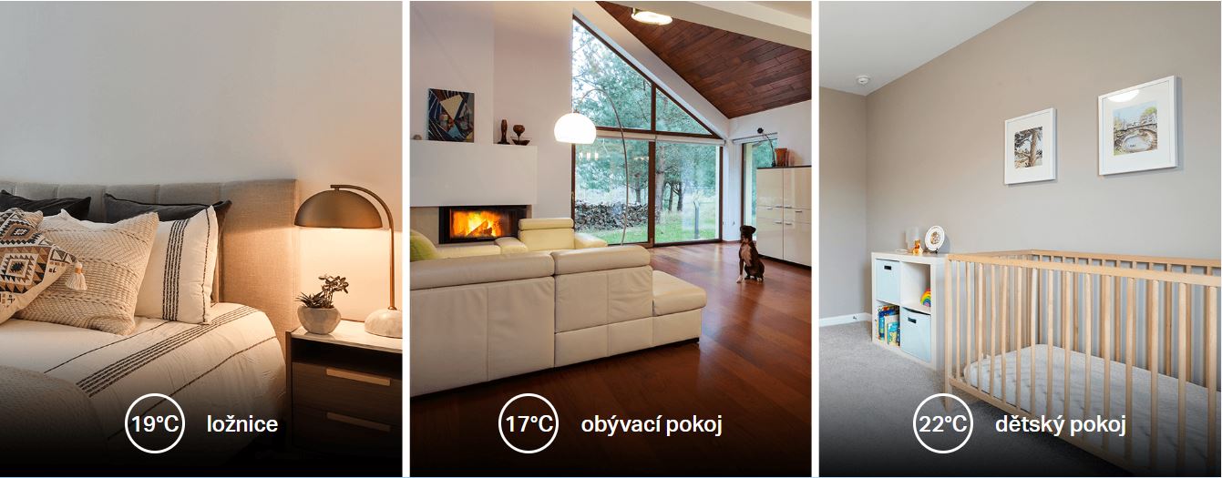 * inteligentní rozvrh - Nastavujte rozvrhy vytápění na základě svých každodenních činností, aby bylo vytápění efektivnější.