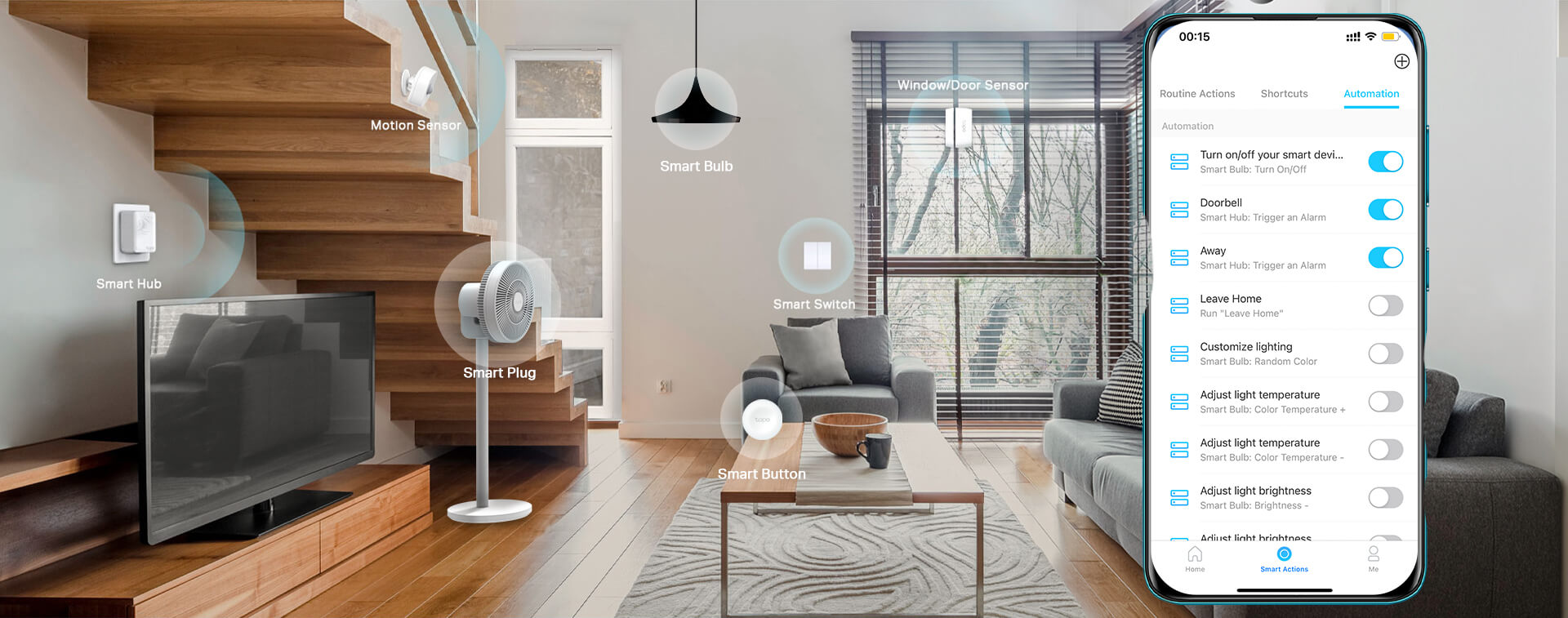 Díky Smart Acitons budou vaše zařízení Tapo bezproblémově spolupracovat a vytvořit chytřejší domov. Spusťte vypínač, když je detekován pohyb pomocí Tapo Motion Sensor. Seskupte světla a zařízení do jednoho vypínače, abyste mohli ovládat celou místnost jediným klepnutím.