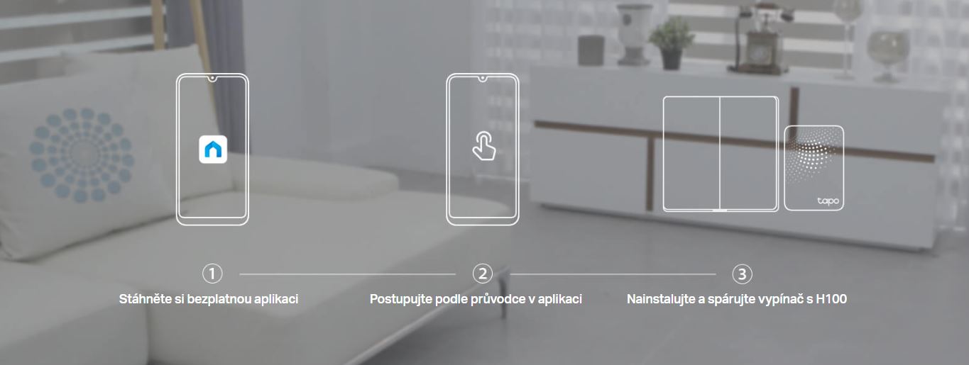 Jakmile nainstalujete aplikaci Tapo a budete postupovat podle jejího průvodce v aplikaci, vyměňte svůj tradiční vypínač a spárujte jej s rozbočovačem Tapo Hub (H100), abyste mohli začít používat svůj chytrý vypínač.